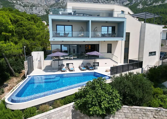Gosti koji borave u smještaju mogu se opustiti na balkonu i prostoru za sjedenje, koji nude udobnosti poput pegla s daskom za peglanje i klima uređaj, kao i višekanalnu televiziju. Ova makarska vila sastoji se od 3 spavaće sobe i 5 kupaonica, opremljenih tušem za ulazak, zasebnim WC-om i kadom.